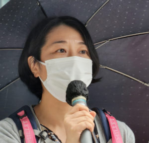 そういう中で、大事な選挙がやってきました。今回投票できない子どもたちのためにも、100年ずっとブレない共産党に、みなさんの1票をよろしくお願いします!(3日、名古屋駅)