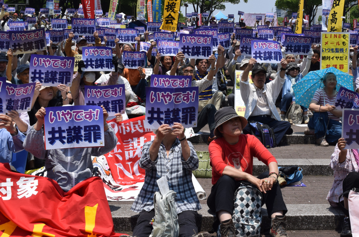 犯罪行為をおこなわなくても相談したことを罪に問うことができ、警察や検察などの捜査機関が国民の内心を監視・弾圧の対象とし、えん罪を招くおそれが指摘されている「共謀罪」法案。廃案を求める集会が10日、名古屋市でおこなわれ、約1000人の市民が参加しました。