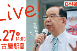 1月27日(火)14:00より名古屋駅東口に日本共産党の志位和夫議長が来ます。Live配信もありますのでぜひご覧ください。https://youtube.com/live/EzkO072Fmuk?feature=share