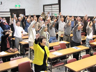 佐々木憲昭衆院議員、かわえ明美比例予定候補、もとむら伸子愛知選挙区比例予定候補が出席。参加者は、比例得票目標33万票の実現に向け、次期総会(来年3月20日)までに会員を30万人(現在20万6000人)に増やすことを申し合わせました。