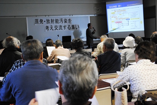 日本共産党一宮市委員会は5月12日、一宮市内で「原発・放射能汚染を考え交流する集い」を開き、市民ら約50人が参加しました。