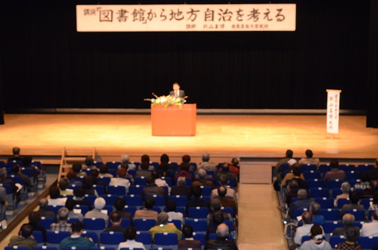 愛知県小牧市で6日、地方自治体にとって図書館はどうあるべきかを学ぶため、元総務相で慶応大学教授の片山善博氏を招いた講演会が同市東部市民センターで開かれ、市民、市議ら350人が参加しました。