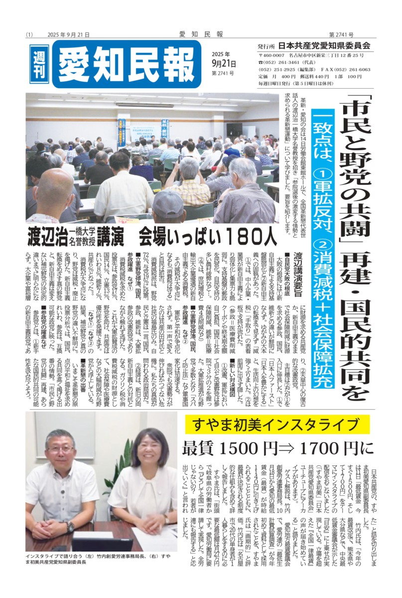 以下をクリックするとファイルが絞り込まれます すべてのカテゴリ バナー 愛知民報号外 宣伝カースポット 写真 演説原稿例 パネル 東海ブロックニュース 署名 その他 愛知民報 写真 2025年9月27日 【写真】あさおようへい_切り抜き ダウンロード 宣伝カースポット 2025年9月21日 【流しスポット原稿】2025.9.19作成 ダウンロード 愛知民報 2025年9月21日 2025年9月21号 「市民と野党の共闘」再建・国民的共同を ダウンロード さらに表示