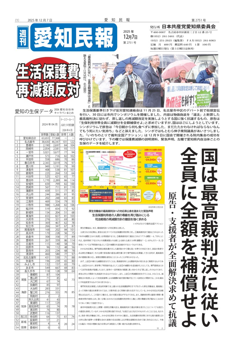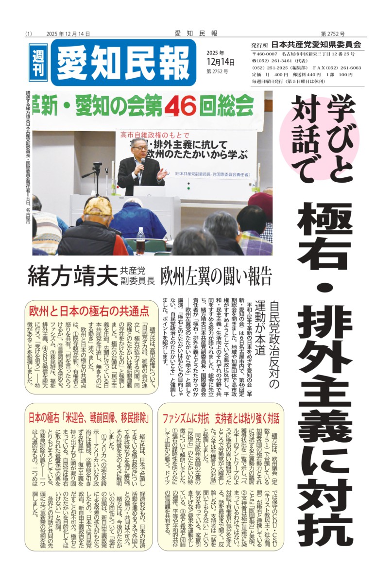 以下をクリックするとファイルが絞り込まれます すべてのカテゴリ バナー 愛知民報号外 宣伝カースポット 写真 演説原稿例 パネル 東海ブロックニュース 署名 その他 愛知民報 愛知民報 2025年12月21日 2025年12月21日号 2025年選挙後退の悔しさをバネに 要求対話・党勢拡大に全力 ダウンロード 愛知民報 2025年12月15日 2025年12月14日号 学びと対話で極右・排外主義に抵抗 ダウンロード 愛知民報 2025年12月7日 2025年12月7日号 生活保護費再減額反対 ダウンロード さらに表示