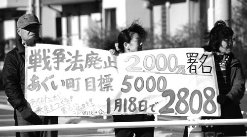 竹内 昨年結成した「平和安全保障関連法の廃止を求める阿久比町民の会」の呼びかけ人に元町長、7人の元町議会正副議長、2人の元大学教授、お寺の住職、元JA幹部など約140人が名を連ねました。すごい広がりです。石川桂元町長は共同の先頭に立っています。2月7日に署名成功をめざす「町民のつどい」を行います。その日までに4000人分まで集めたい。