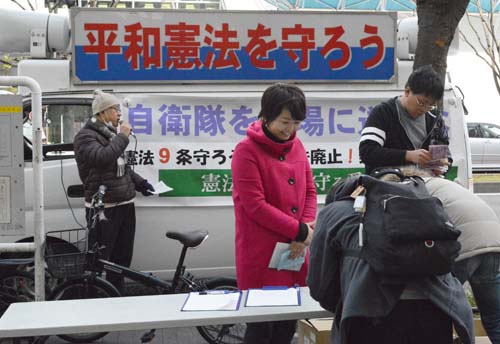 憲法と平和を守る愛知の会は翌11日、名古屋市中区で宣伝しました。
